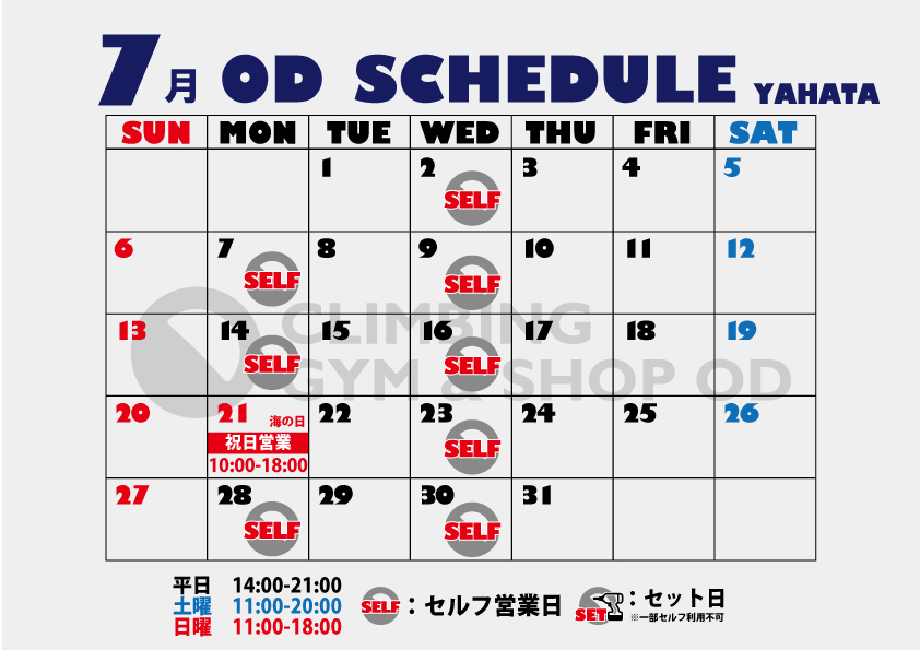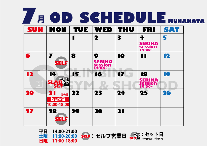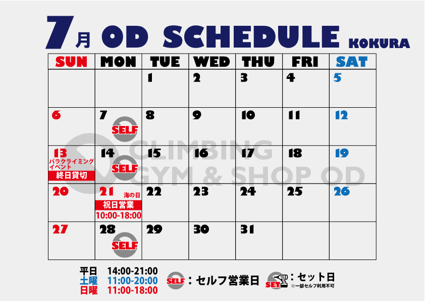 各店7月カレンダー